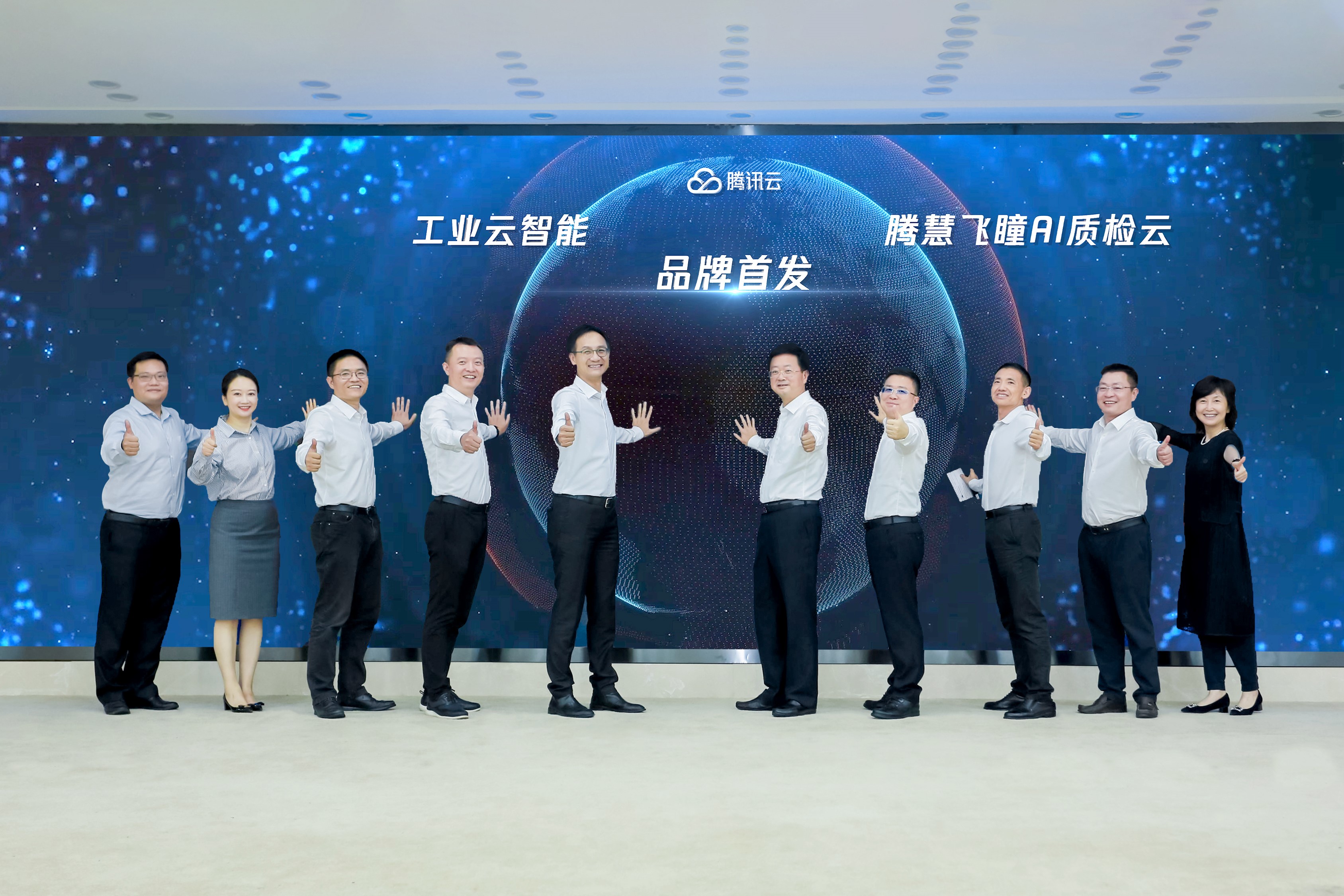 签约现场还举行了腾讯云工业智能品牌及腾慧飞瞳AI质检仪发布仪式。