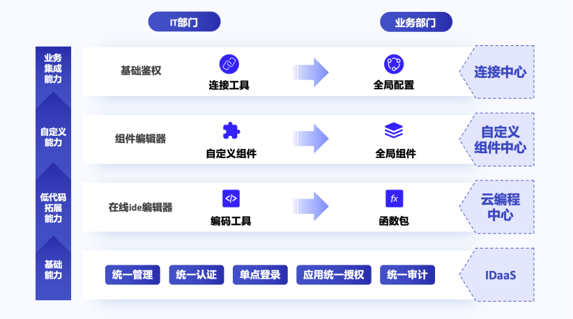 轻流提出的“轻代码”整合了连接、自定义组件、云编程三大中心和IDaaS模块体系,将与轻流无代码开发平台一起,覆盖更多行业场景,提升整体平台可拓展性。
