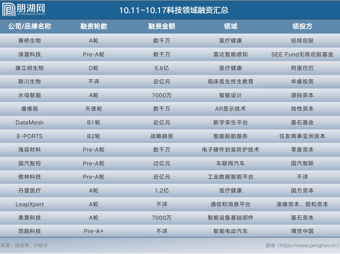 朋湖网科技频道将以技术及应用为出发点,对AI、芯片、5G、硬科技等领域融资及大事件进行汇总分析,并以周报形式发布。以期为业内人士提供查漏补缺、洞察产业动态及融资走向的辅助性工作。